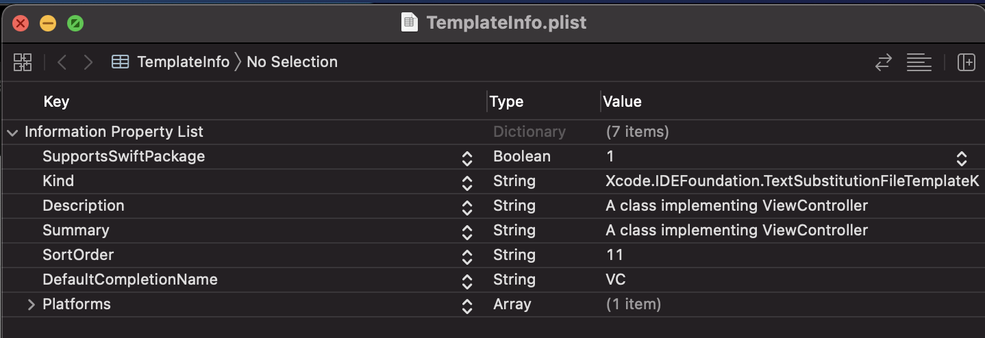 - plist에서 DefaultComletionName을 VC로 했기 때문에 VC가 입력되어 있는 상태
