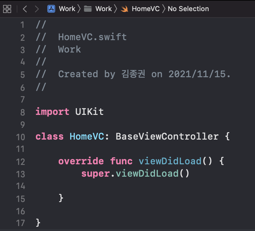- 붙여넣기한 ___FILEBASENAME___.swift 파일을 열어서 수정