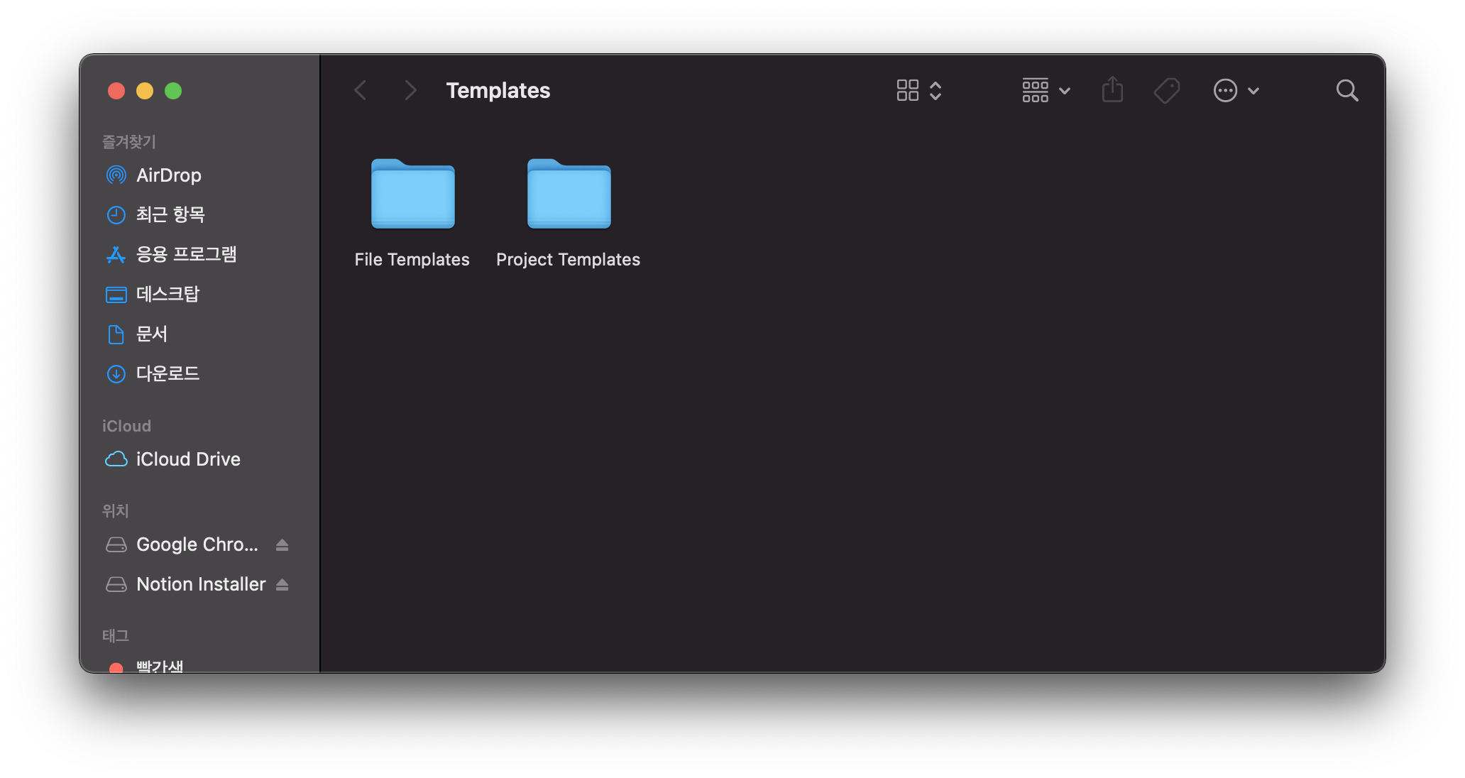 - 아래 경로에 Templates폴더와 그 하위에 File Templates 폴더를 생성