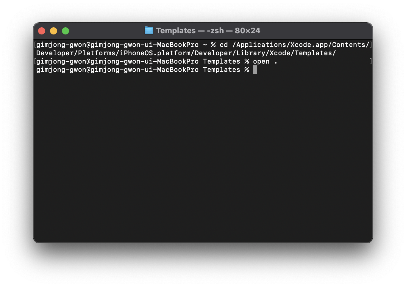 cd ~/Library/Developer/Xcode/Templates/File\ Templates/jake.xctemplate