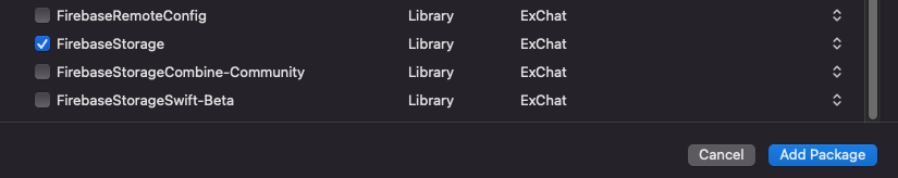 - FirebaseAuth, FirebaseFirestore, FirebaseFirestoreSwift-Beta, FirebaseStorage 체크