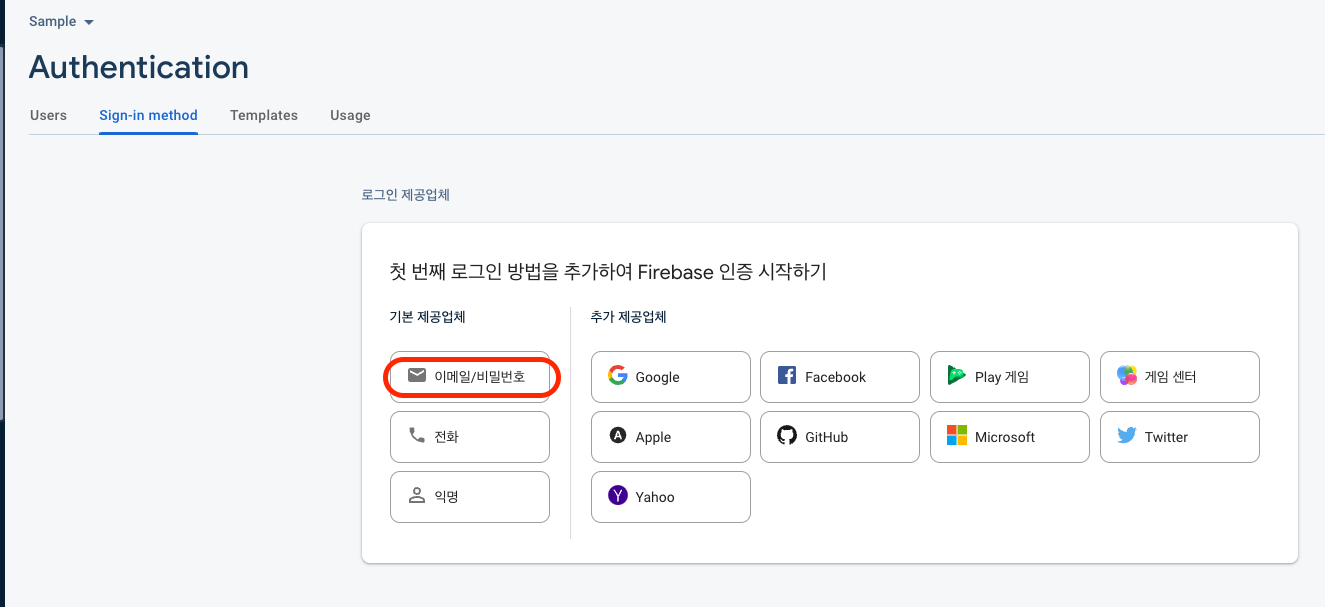 - 이메일/비밀번호 클릭