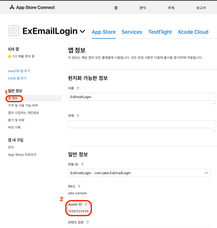 - App Store ID, Team ID 아래에서 확인