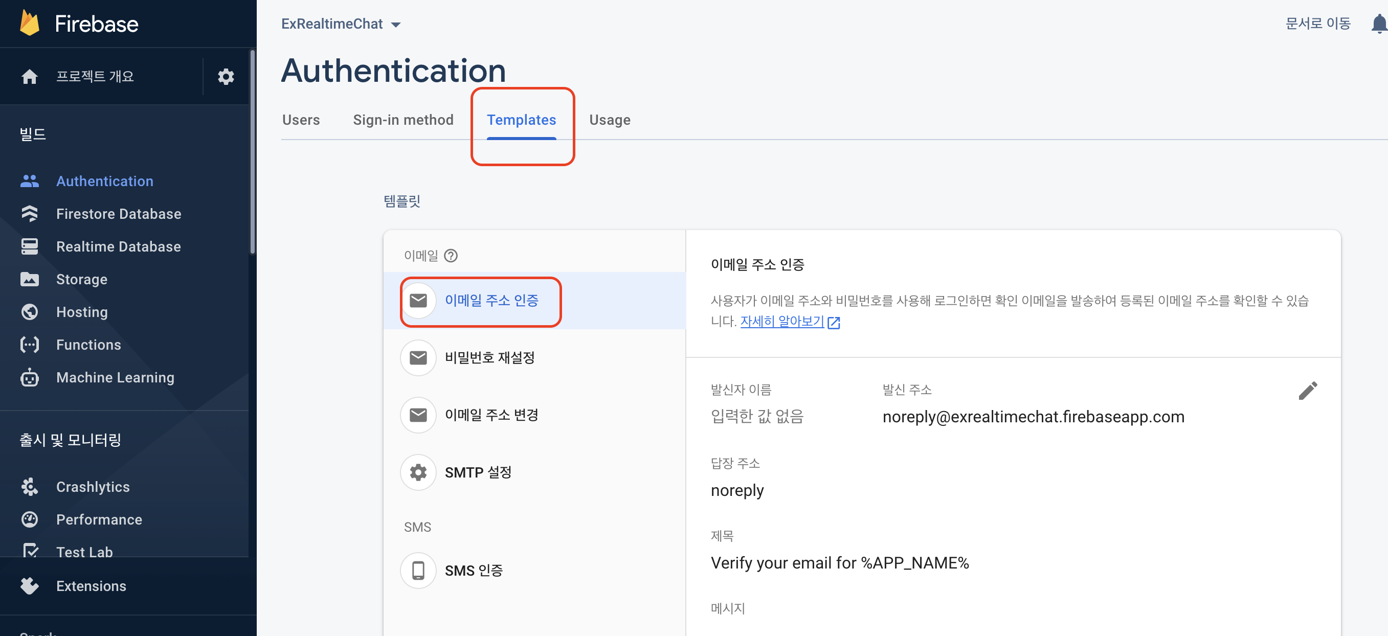 - 반드시 firebase에서 추천해주는 domain 이름으로 설정