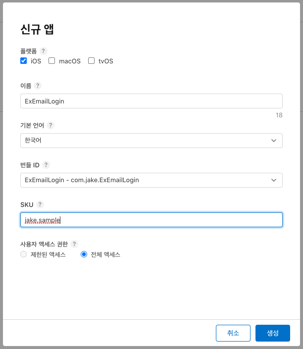 - App Store Connect에서 애플리케이션 생성