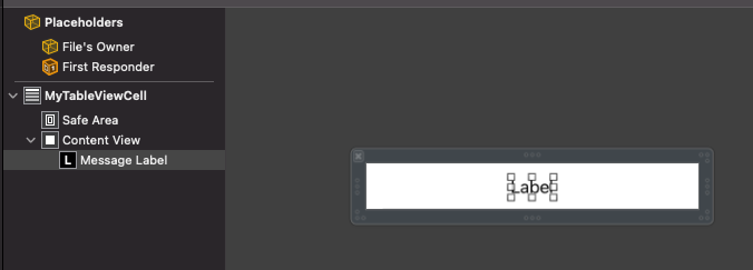 - MyTableViewCell.xib에 UI 컴포넌트 생성 (위치는 코드에서 layoutSubViews에서 계산할 것이므로 오토레이아웃 설정 x)