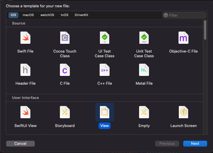 - cf) cell이 아닌 일반적인 view를 만들때는 .swift파일과 .xib파일 생성