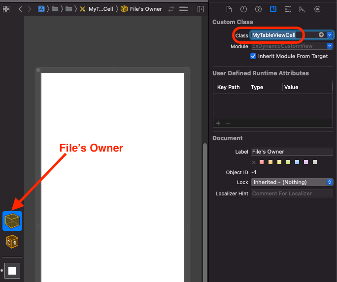 - Files's Owner를 설정하여 해당 .xib를 소유할 클래스를 지정