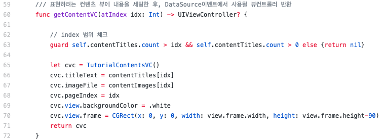 - UIPageViewControllerDataSource 구현, 83번라인, 95번라인