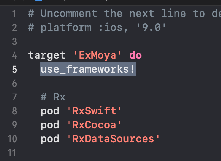 - Cocoapods은 Dynamic Library만 지원하는데, 이때 Dyanamic Library를 사용한다는 명시적인 의미로, use_frameworks!로 선언
