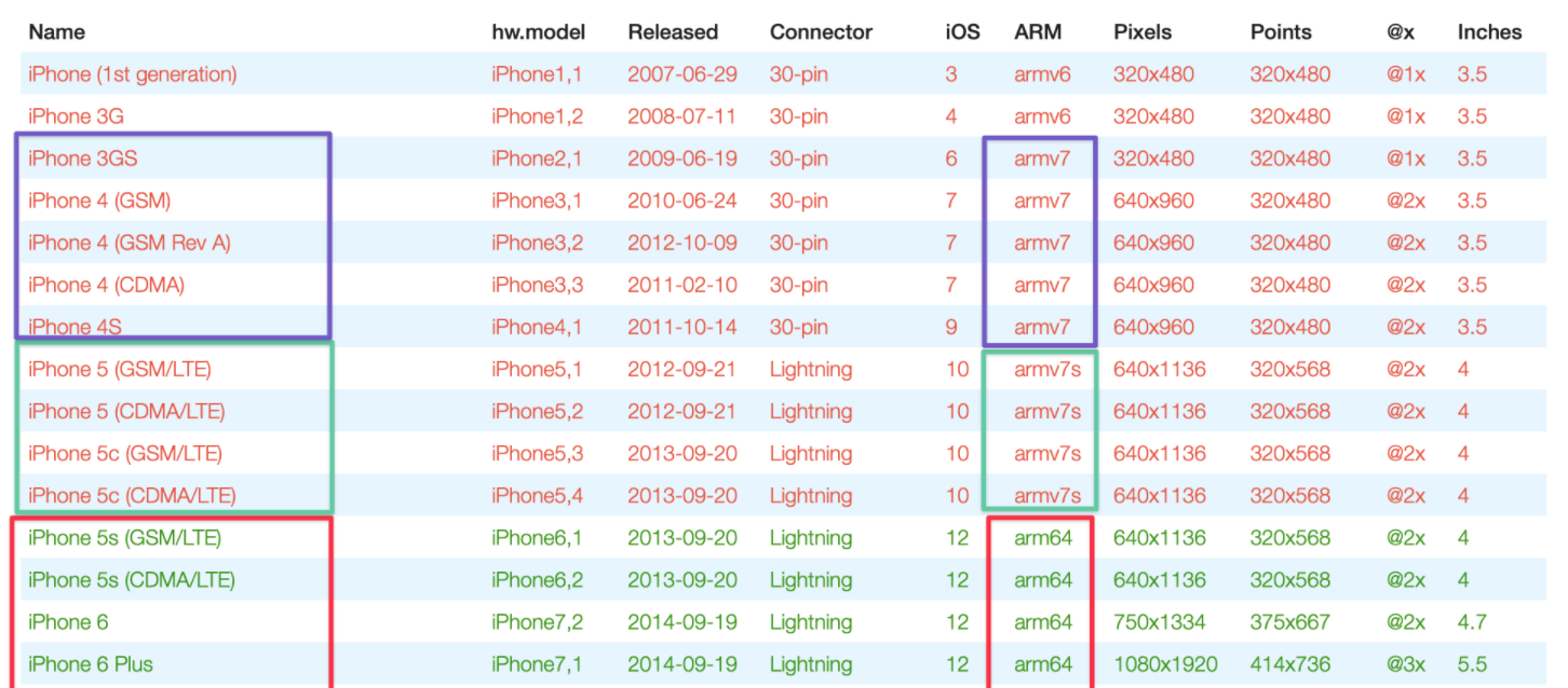 - ARM 아키텍처, iPhone: https://www.theiphonewiki.com/wiki/ARMv7