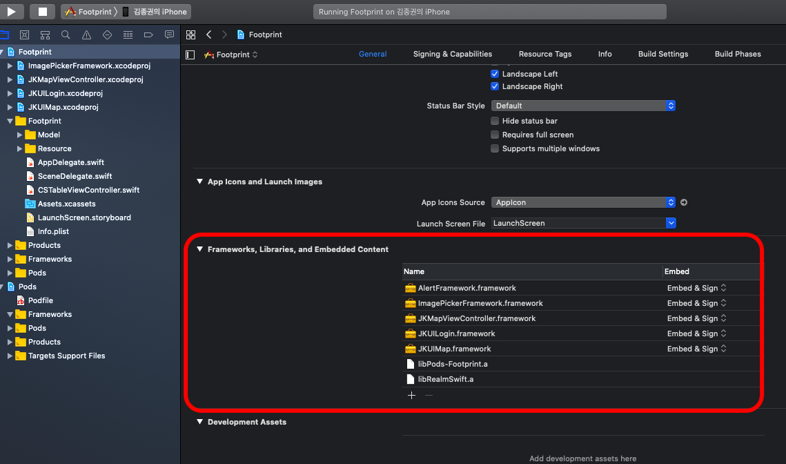 프레임워크를 내장되게끔 추가해주면 해결 : target -> frameworks, Libraries, and Embedded Content에서 프레임워크 +버튼 눌러서 추가
