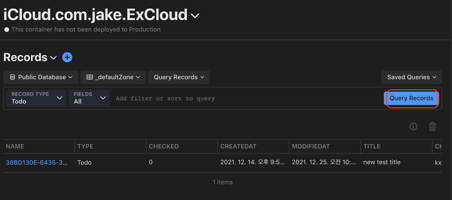 - Query Records를 클릭할 경우 만들어진 Record 확인 가능