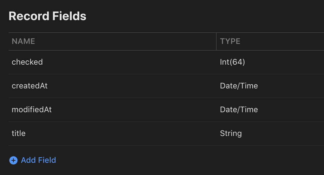 - 이름은 Todo, 4가지 Field 생성
