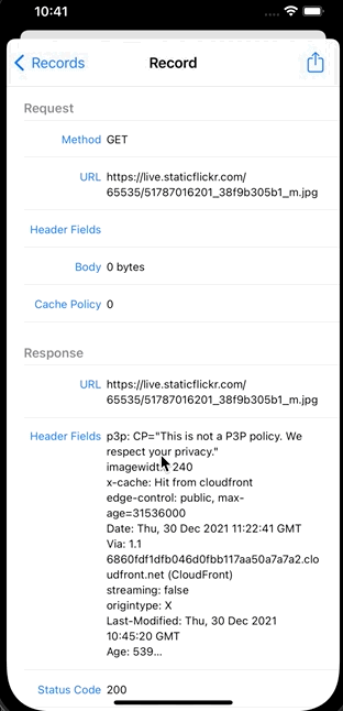 - URLSession을 사용한 모든 Request, Response들을 수집하여 표출