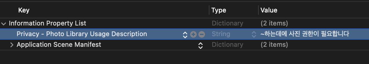 - 사진 시스템 접근: Privacy - Photo Library Usage Description