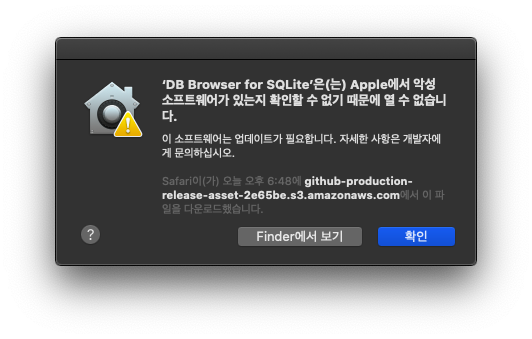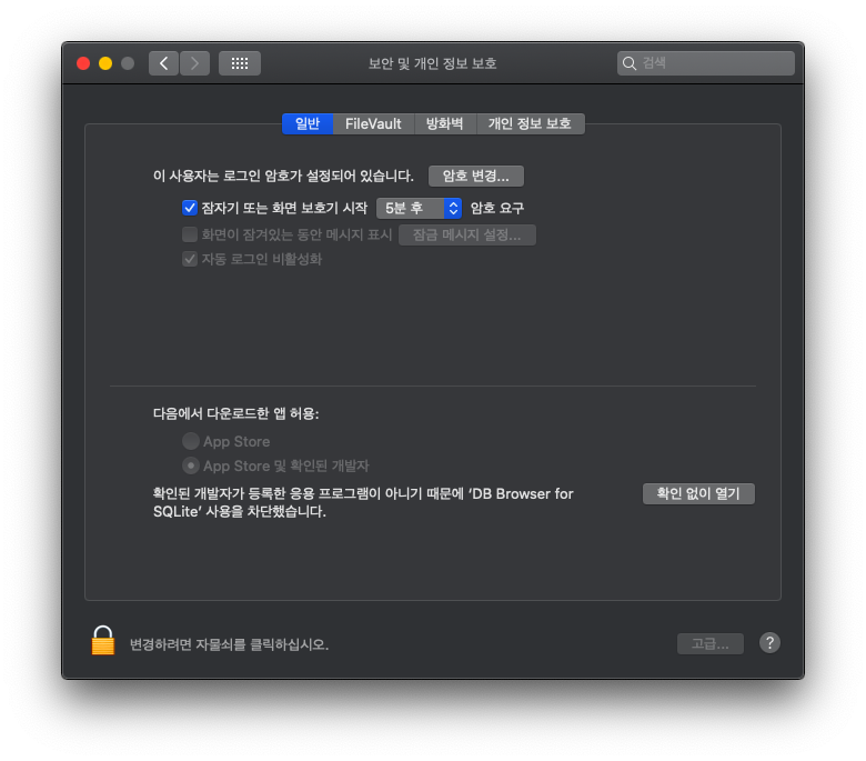 * 보안 해결 : 시스템 환경설정 -> "확인 없이 열기"클릭