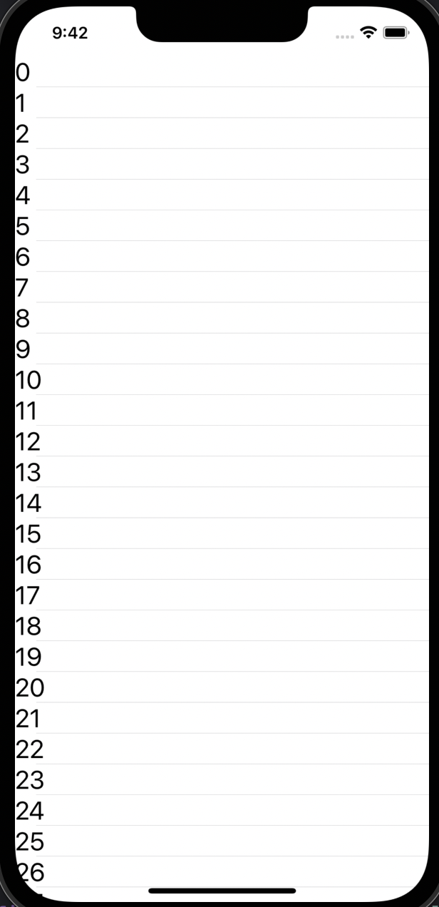// 삭제 self.tableView.dataSource = self ... extension ViewController: UITableViewDataSource { func tableView(_ tableView: UITableView, numberOfRowsInSection section: Int) -> Int { dataSource.count } func tableView(_ tableView: UITableView, cellForRowAt indexPath: IndexPath) -> UITableViewCell { let cell = tableView.dequeueReusableCell(withIdentifier: "cell", for: indexPath) as! MyCell cell.prepare(text: self.dataSource[indexPath.row]) return cell } }