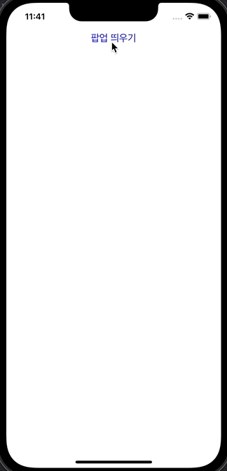 cf) 아래와같은 UIViewController를 커스텀하여 만든 팝업은 이 포스팅 글 참고