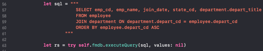 - Int형을 다시 Int형으로 감싸주는 이유는(65번라인) rs.int(forColumn:)으로 반환되는 형이 "Int"가 아닌, "Int32"이기 때문