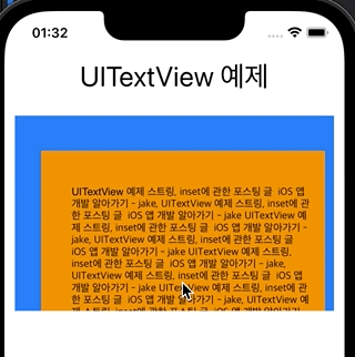 * inset 별도로 UITextView에는 좌우 패딩이 5만큼 들어가 있는데, lineFragmentPadding 이 값에 관한 내용은 다음 포스팅 글 참고
