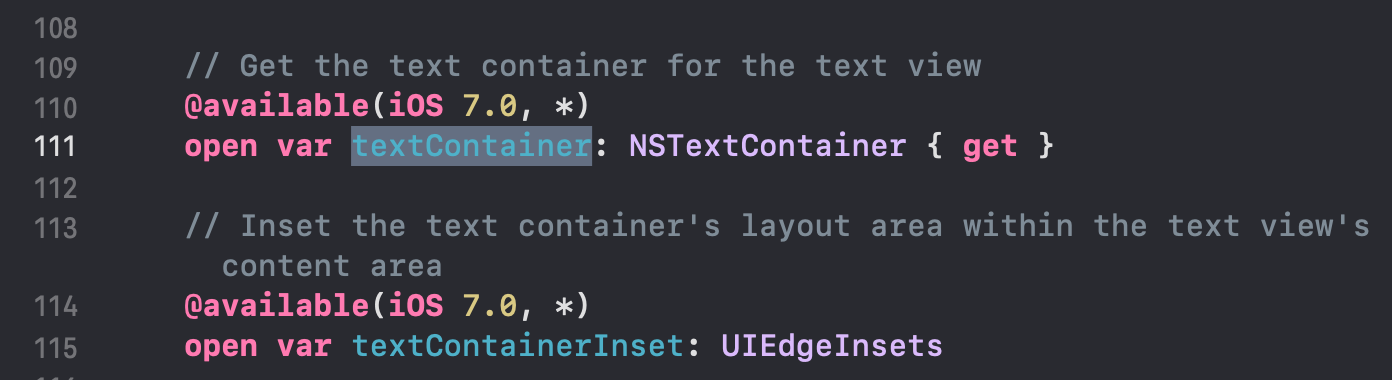 - textInputView를 감싸고 있는 프로퍼티는 textContainer이므로, textInputView 내부의 inset을 조절하고 싶은 경우에는 `textContainerInset` 프로퍼티를 사용