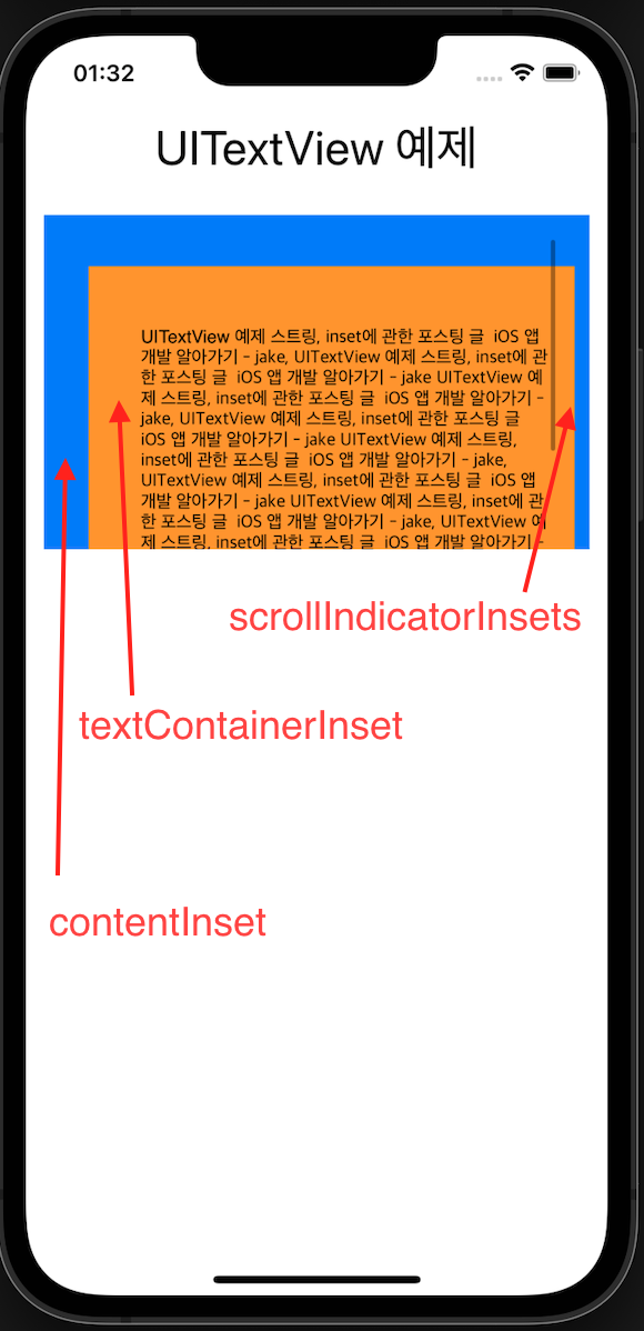 [iOS - swift] UITextView의 구조 (contentInset, textContainerInset, scrollIndicatorInsets) 본문