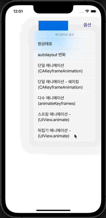 - autolayout으로 뷰의 위치를 변경할 때, 추가적으로 스프링 애니메이션 옵션 추가