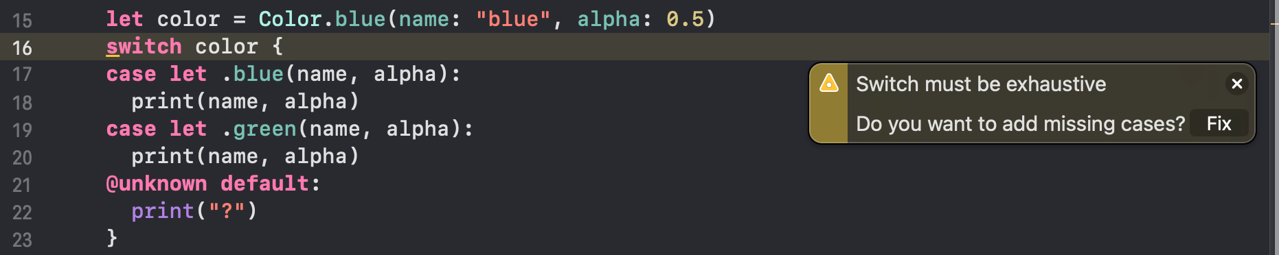 - @unknown default를 사용하면 warning 메시지 확인 가능