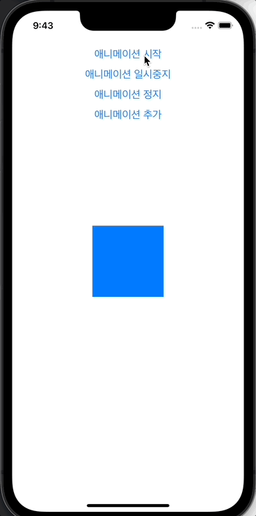 - UIView.animate와 다르게 시작, 종료, 일시중지, 정지, 완료가 가능