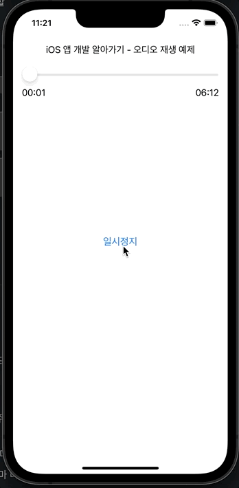 [iOS - swift] 3. AVFoundation 개념 - AVPlayer 오디오 재생, 일시정지, 재생구간 이동 구현 (play, pause, seek)