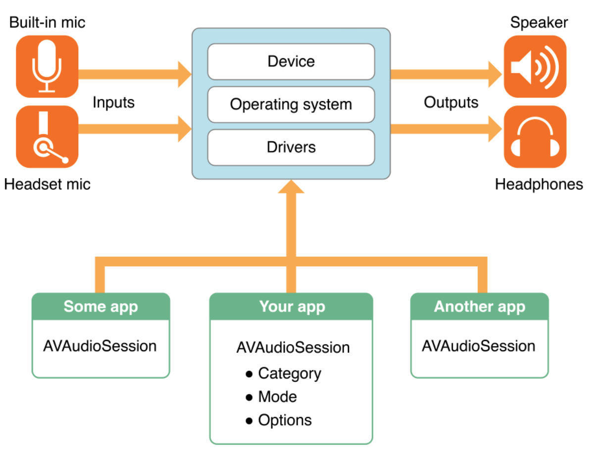- AVAudioSession라는 싱글톤이 있고, 이 싱글톤을 통해 OS에서 마이크, 오디오 설정등이 가능