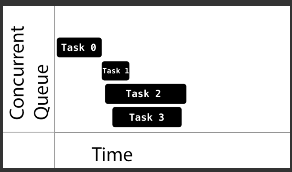 - concurrent queue: task가 수행될 때 queue에 남은 작업들은 wait되지 않고 수행