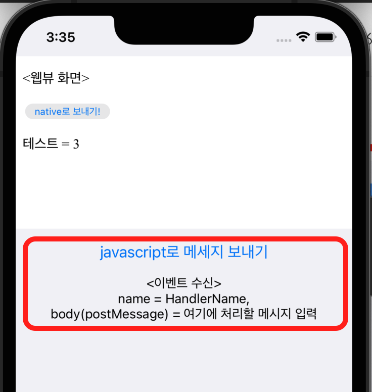 window.webkit.messageHandlers.{메시지 핸들러 이름}.postMessage("전달할 메시지 입력")