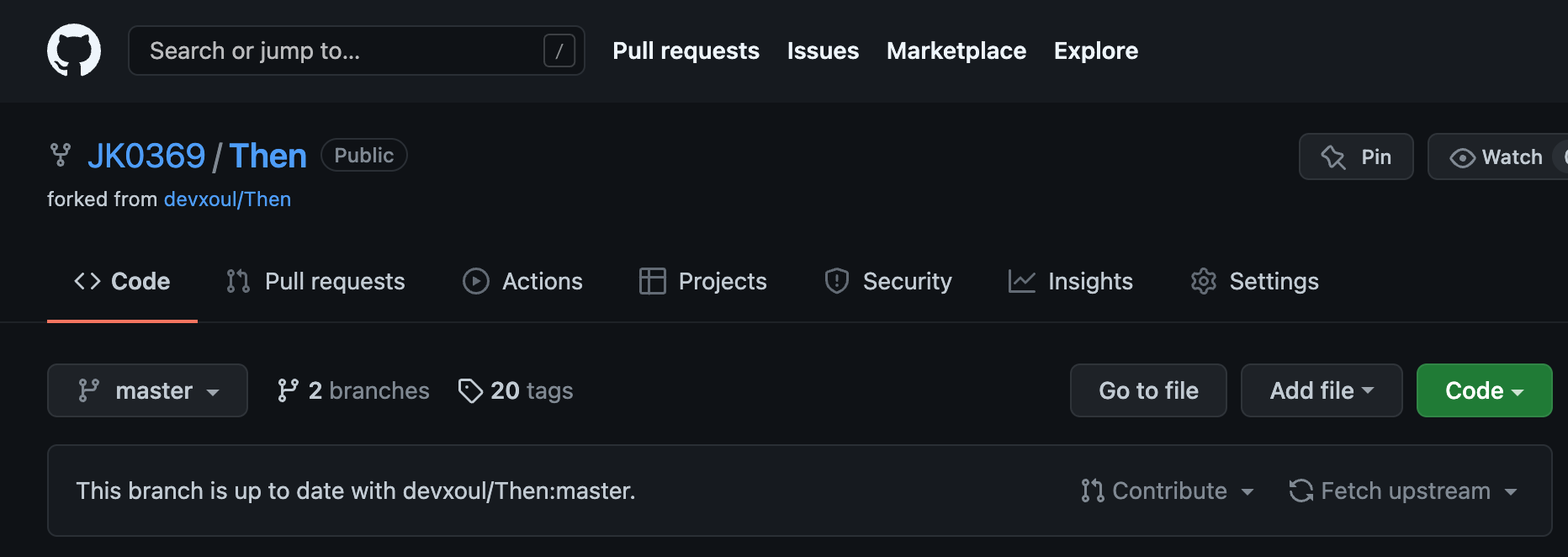 - 위에서 Repository name에 Then으로 적었으므로, 내 레포에 Then이라는 레포가 생성