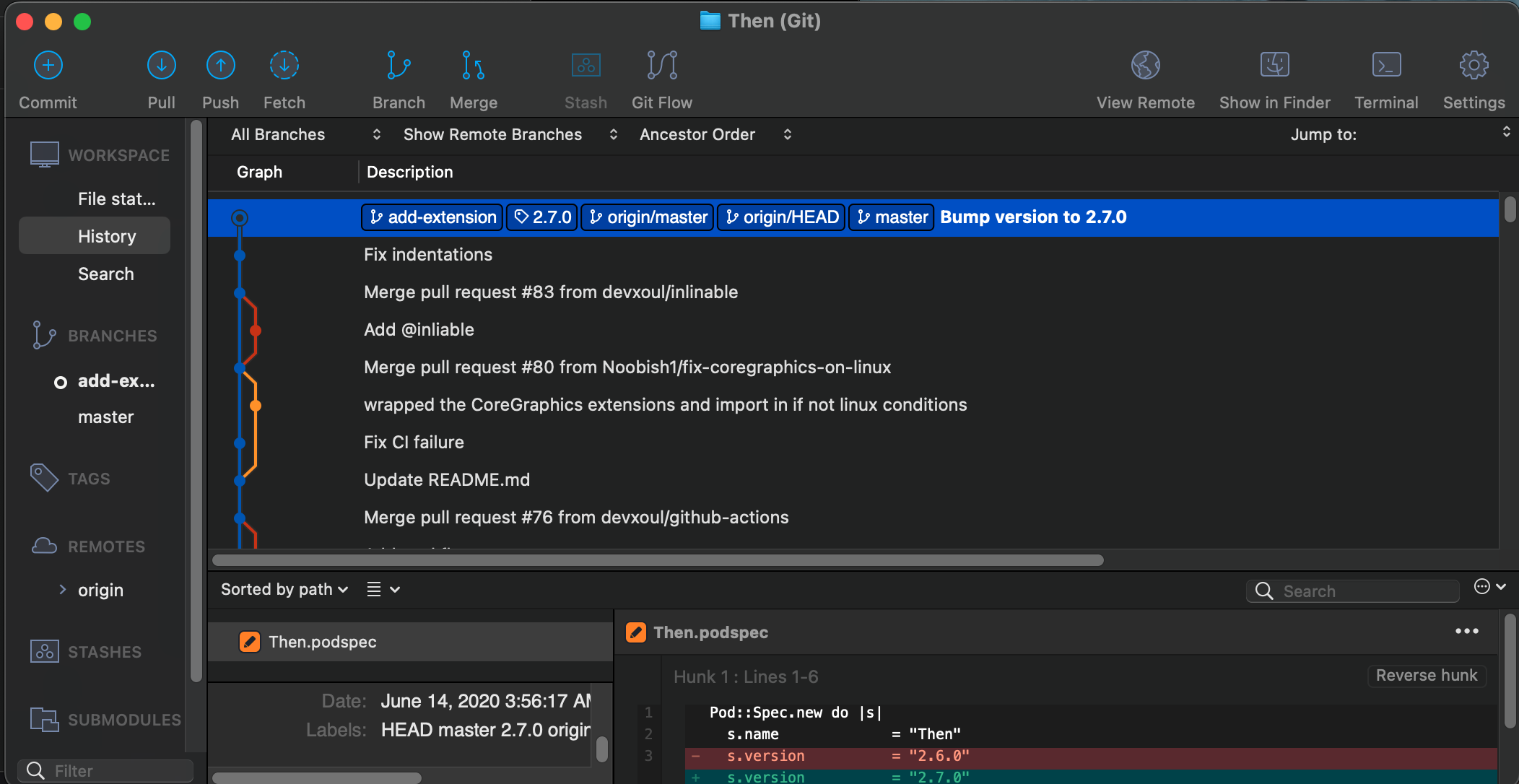 - pod 'Then', :git => 'fork한 깃헙 주소', commit: => '위에서 변경된 부분의 커밋'