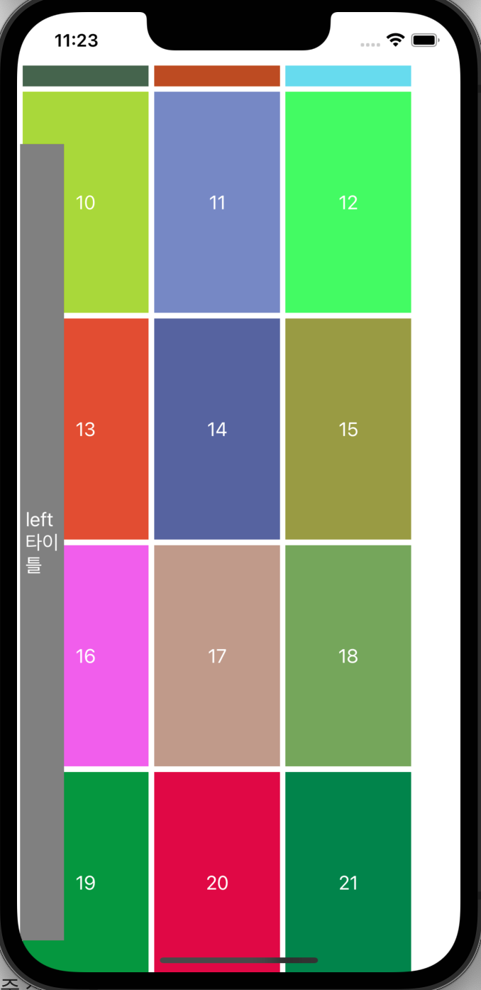 - 아래는 group의 left supplementaryView의 fractionalWidth를 0.1로 주고, group의 fractinoalWidth를 0.9로 준 상태