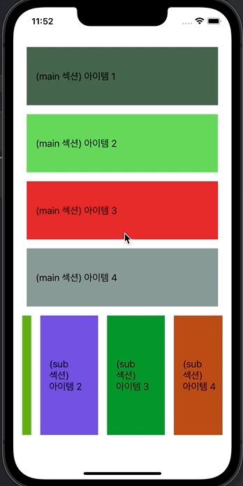 - 기존에는 수평스크롤을 넣고 싶은 경우, cell안에 collectionView를 하나 더 넣어서 수평 스크롤을 구현했지만 orthogonalScrollingBehavior를 사용하면 간결