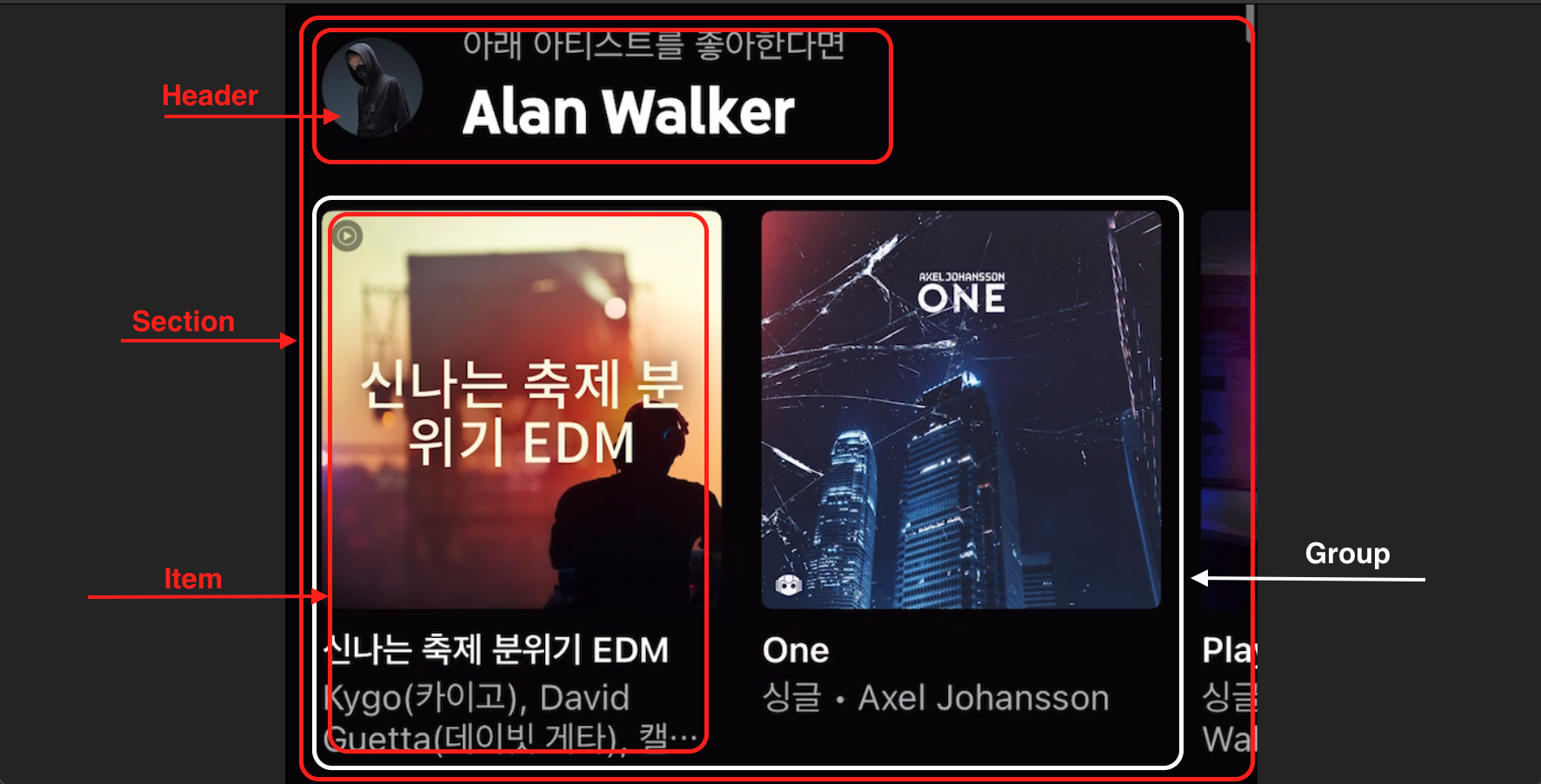 - Section과 Item은 일반적으로 아는 개념이지만, Group은 CompositionalLayout에서 새로 생겨난 개념