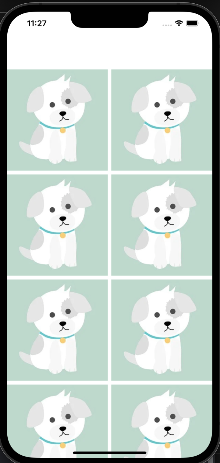 - 위 델리게이트 중 sizeForItemAt 메소드에서 collectionView의 width값을 가져와서 너비에 관한 적절한 크기를 계산해서 셀의 크기를 결정해주면 grid cell 완성