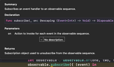 let subscription = observable.subscribe({ (event) in