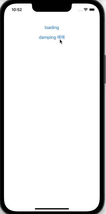 - initialSpringVelocity: 0에 가까울수록 damping의 속도가 빠르고 1에 가까울 수록 속도가 느린 것