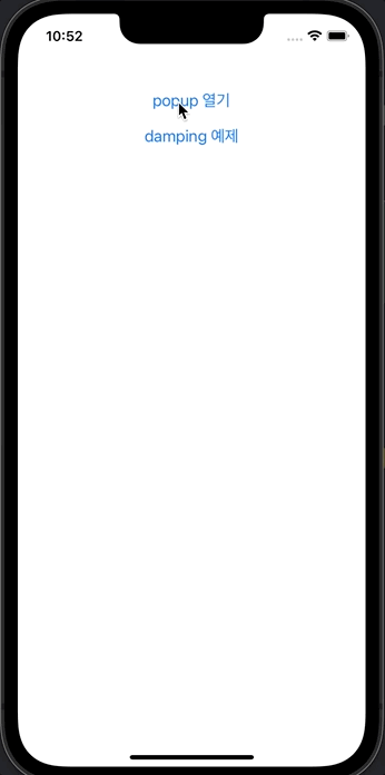 - 팝업이 지정한 레이아웃보다 조금 더 위로 올라갔다가 다시 아래로 내려가는 damping 애니메이션은 스프링 애니메이션을 사용