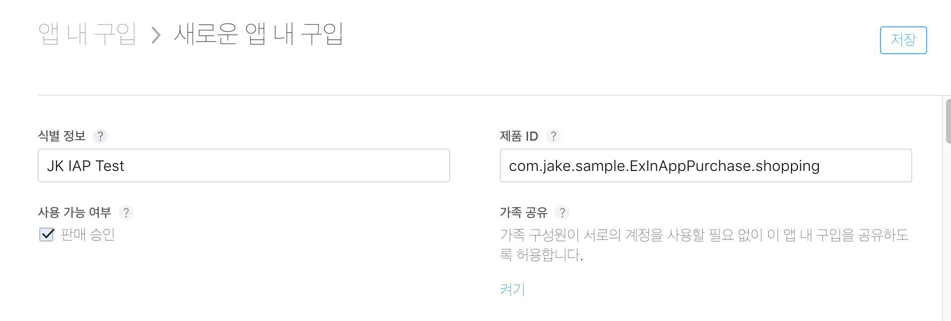 - 식별 정보: App Store에서의 In-App Purchase의 ID (판매 및 추세 보고서에 사용되는 ID)