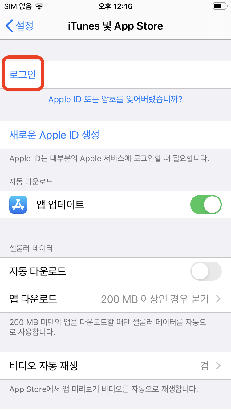 - iPhone > Setting > iTunes 및 App Store
