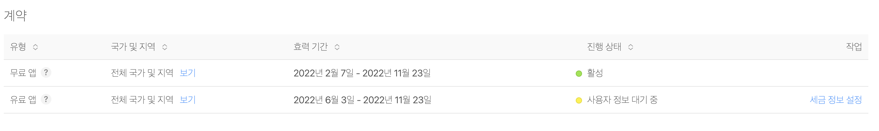 - App Store Connect > 계약, 세금 및 금융거래 탭 > 유로 앱 > 활성 상태가 아니고 사용자 정보 대기 중이면 아직 사용 불가