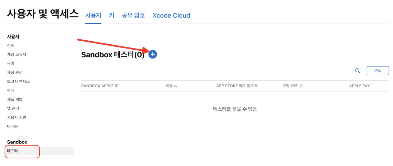 - App Store Connect > 계정 및 액세스 > sandbox 계정 생성