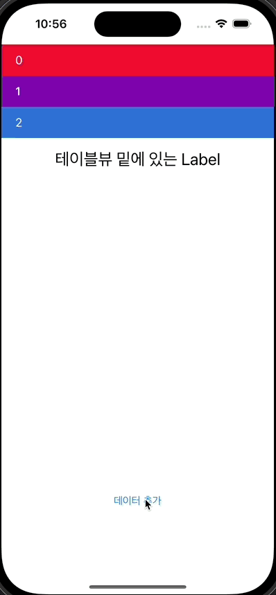 - 데이터를 추가하며 테이블뷰의 height가 증가하는 것을 확인하기 위해 button과 label 준비