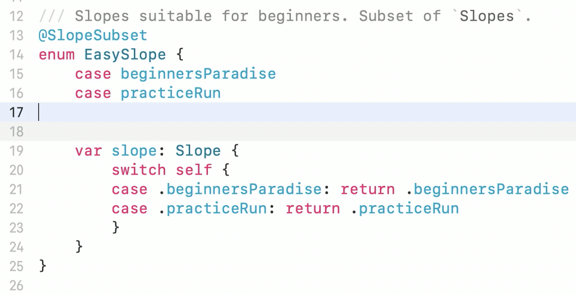 - 위에서 만든 스위프트 매크로를 EasySlope모델에 적용하기 위해, @SlopeSubset으로 선언하면 컴파일 에러가 발생