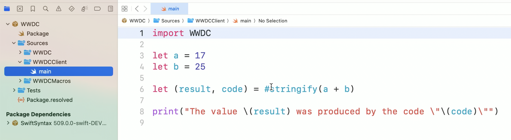 - WWDC라는 이름의 Swift Macro를 생성하면 템플릿 코드와 함께 생성